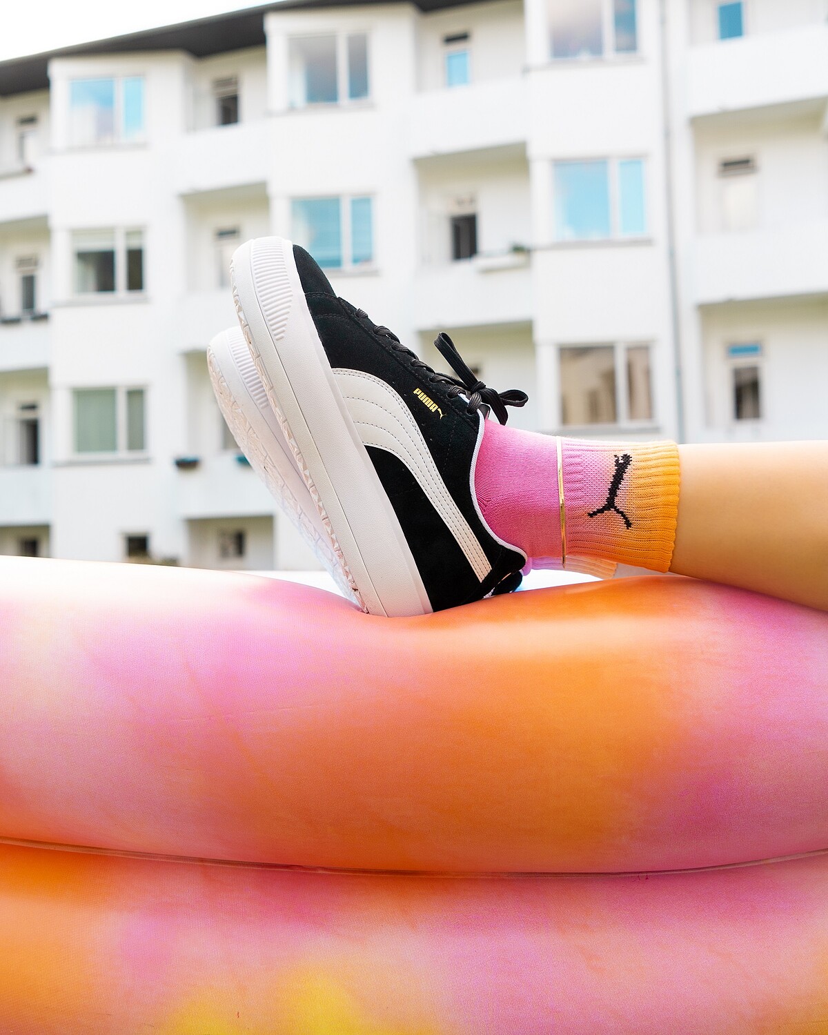今年上半年,由 PUMA 女力大使 Dua Lipa 親自演繹首度曝光的復古龐克厚底美鞋 SUEDE MAYU,寶石藍及熱情紅兩大復刻配色首發上市便迅速抓住女孩們的眼球,成為各大社群媒體熱議鞋款,今年秋天,PUMA SUEDE MAYU 變身以經典不敗時尚黑白配色正式在台登場。身為經典 SUEDE 鞋履的 2021 全新進化產物,SUEDE MAYU 以大膽誇張視角重塑設計改造,為 PUMA SUEDE 披上強烈街頭潮流型格,搶眼包裹超厚實氣勢鞋底與奢華麂皮絨質鞋面,傳遞龐克前衛的時尚美型概念。MAYU 這個命名取自於日文「繭」的意思,一方面呼應其鞋頭延伸至鞋跟的厚底外型,如同繭一般層層堆疊包裹而成,另一方面則象徵女孩們在經歷各種挑戰的過程中,接受前人推動、自我歷練後,最終破繭而出的美麗意象。