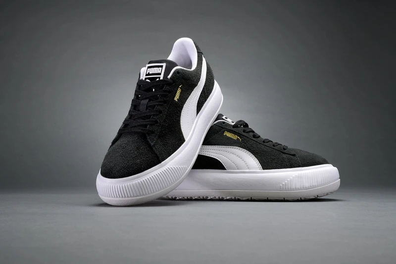 厚底球鞋之王Puma,在10月一開始,與代言人蔡依林再度聯手,呸姊換上Puma全新推出的復古厚底小白鞋SUEDE MAYU,以大膽前衛的球鞋輪廓,結合經典不敗的黑、白配色,搭配頂級的麂皮絨毛材質,還有最吸睛的厚底設計,是今年秋冬必入手的球鞋。
