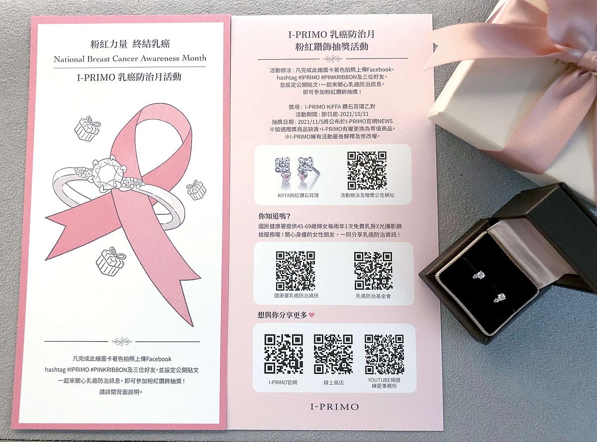 【粉紅力量 終結乳癌】I-PRIMO乳癌防治月粉紅鑽飾抽獎活動
