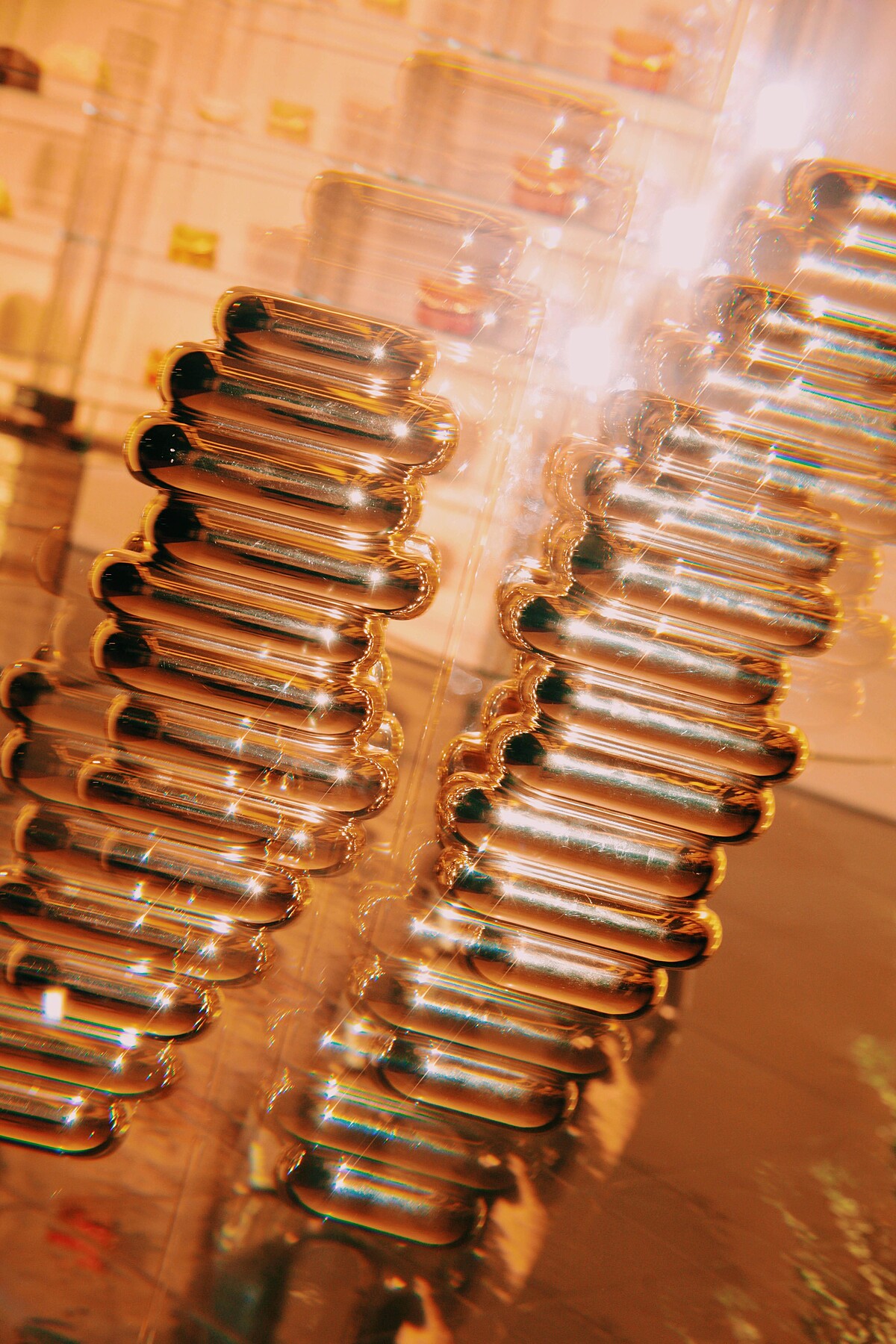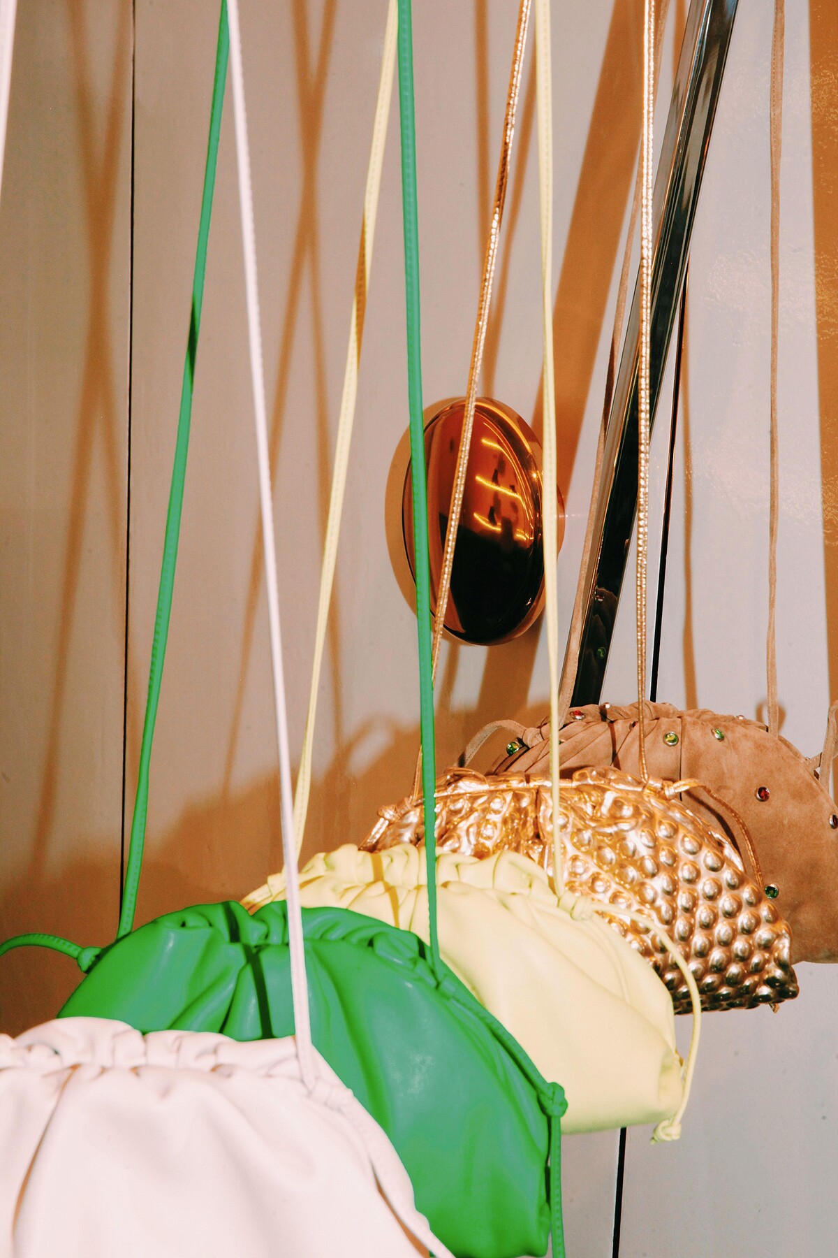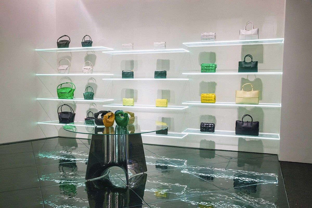 BV的經典符碼在店鋪中處處可見,包括呼應編織工藝的地板設計、鍍鋁合金的三角型衣架,以及陳列架折射的三角型燈光,皆是Daniel Lee為台灣首間BV旗艦店所安排的驚喜細節。