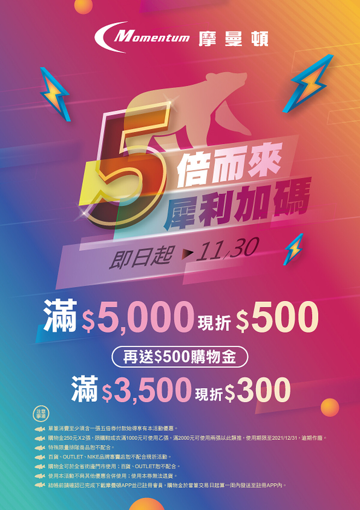 全台皆有分店的運動用品店舖摩曼頓,從現在起到11月底推出「五倍而來犀利加碼」活動,只要前往摩曼頓指定門市,在結帳時使用至少一張不限面額的五倍券,紙本、數位都包含在內,購物買滿3500元現折300元,如果滿5000元就現折500元,另外,摩曼頓還獨家引進New Balance熱賣球鞋NB327珊瑚粉橘、銀灰色等限定款。