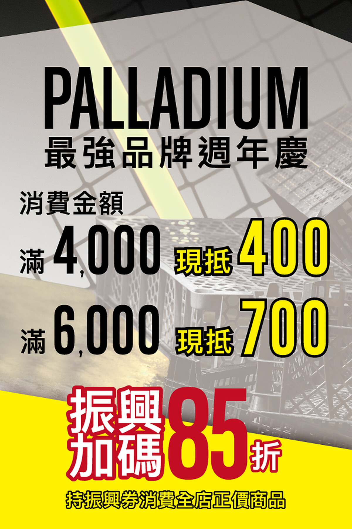 終年不打折的法國軍靴品牌Palladium,為響應振興五倍券推出,只要前往Palladium店舖使用五倍卷結帳,就享有經典鞋履Vapor SC防水靴、Pampa Travel Lite軍靴、Palla Ace鬆餅鞋...等鞋款85折的優惠,如果消費滿4000元現折400元、滿6000千現折700元,趁這波優惠入手一雙靴款好過冬。
