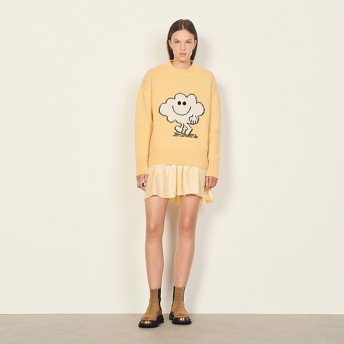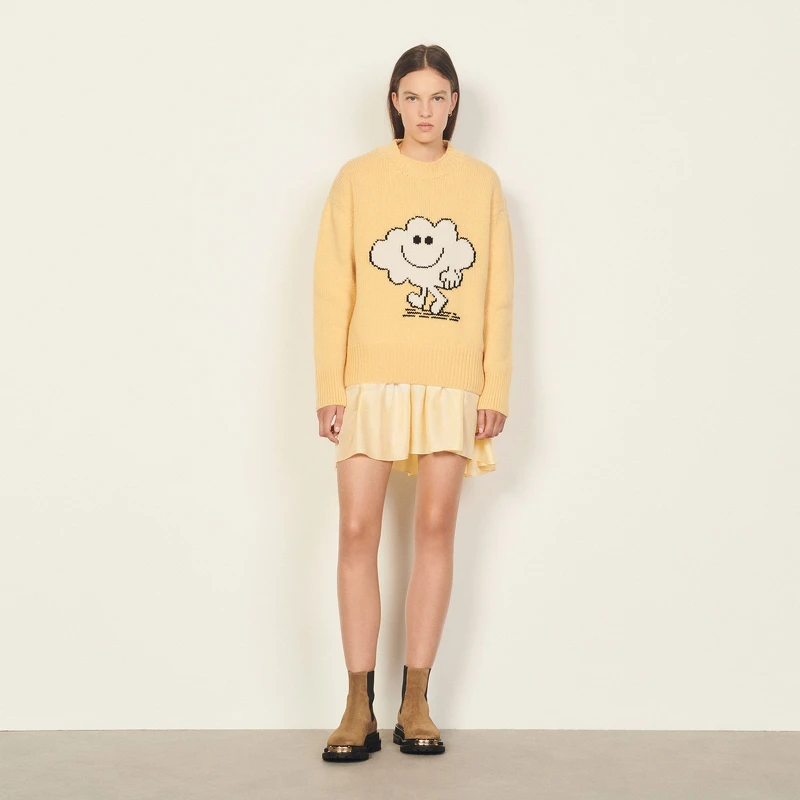 時至今日,時尚圈跨界合作已不是什麼新鮮事,不少品牌都積極地以聯名合作為經營方針,而 Sandro 位於巴黎工作室的團隊,這次以兒時閱讀這些繪本的童年回憶作為開端,尤其色彩豐富的角色與設計師喜愛的多彩色調不謀而合,生動而幽默。