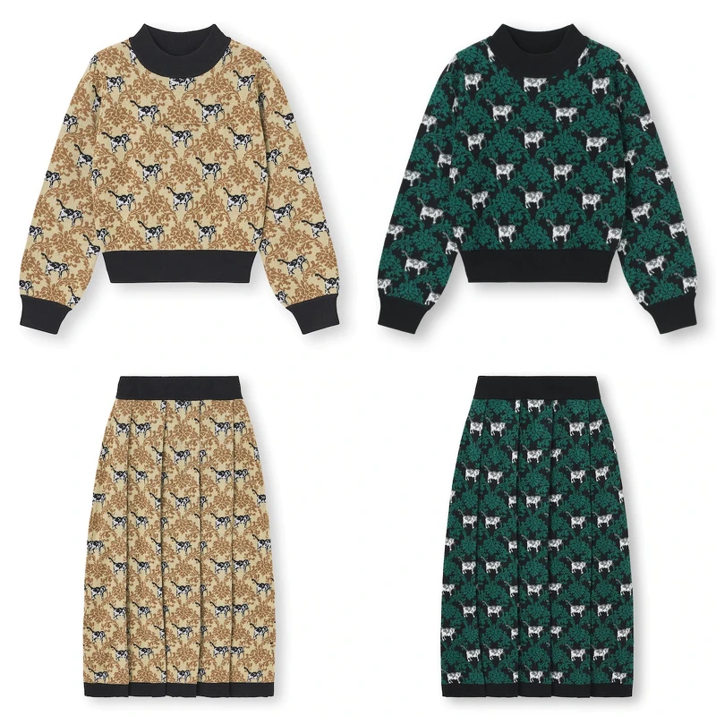 想要無腦穿出時髦穿搭,選擇one tone的套裝準不會出錯!毛絨材質的印花套裝,以灰白色獵豹與復古圖騰交錯著,有知性的墨綠色與氣質的奶油黃色可以選擇。