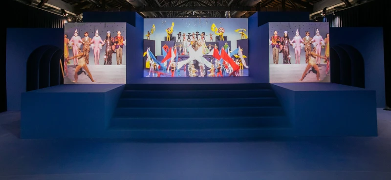 最後一站則是重溫2019年春夏形象廣告,在特別設計的高架投影幕,播放著歡樂的好萊塢音樂劇,致敬當時那個美好的黃金時代。