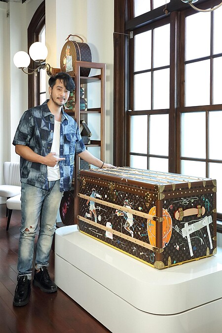 從藝人成功轉型藝術家的郭彥甫創作能量驚人,不只多次舉辦個人展,作品也備受好評,這次與 Louis Vuitton 合作,以他很具標誌性的運動員系列為主題,直接在 Louis Vuitton 經典硬箱上創作,藉由運動員的動感展現 Louis Vuitton 走過160多年、以旅行為精神的核心概念,傳達時間與空間的移動美學。