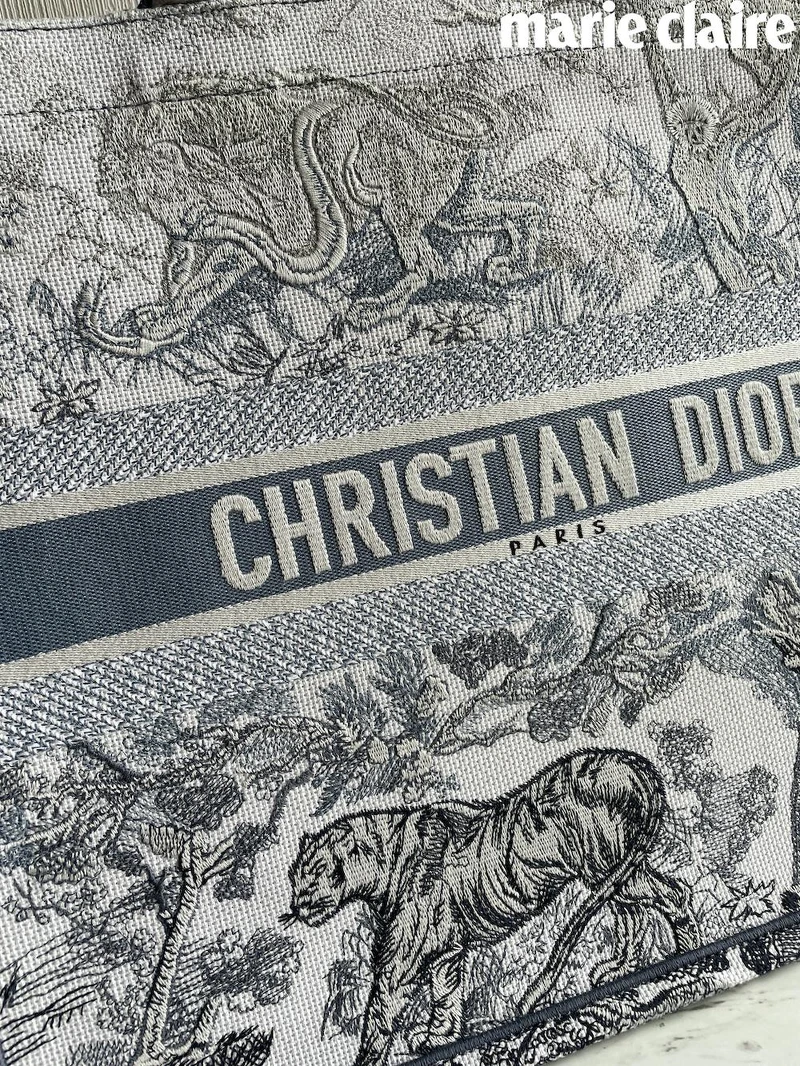 除了以上金色絲線的款式,編輯私心想再偷渡這一款漸層色的Book Tote,從海軍藍、灰藍過渡到淺藍色,在在展現了Dior高超的刺繡工藝。