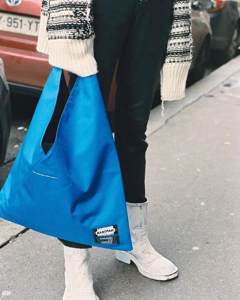 本次與East Pak聯名當然也有MM6經典的Japanese手提袋,選擇以前者經常使用的紅、藍、黑配色製作,並在包包的右下角之處縫上兩個品牌的織標作為裝飾,也因為與East Pak合作的關係,聯名款Japanese提袋的價錢也親民許多。