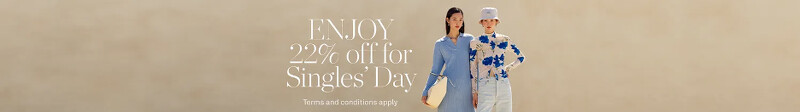 即日起到11月11日,使用優惠碼【SINGLE22】,精選正價商品可享受78折優惠:NET-A-PORTER雙十一活動現場直達