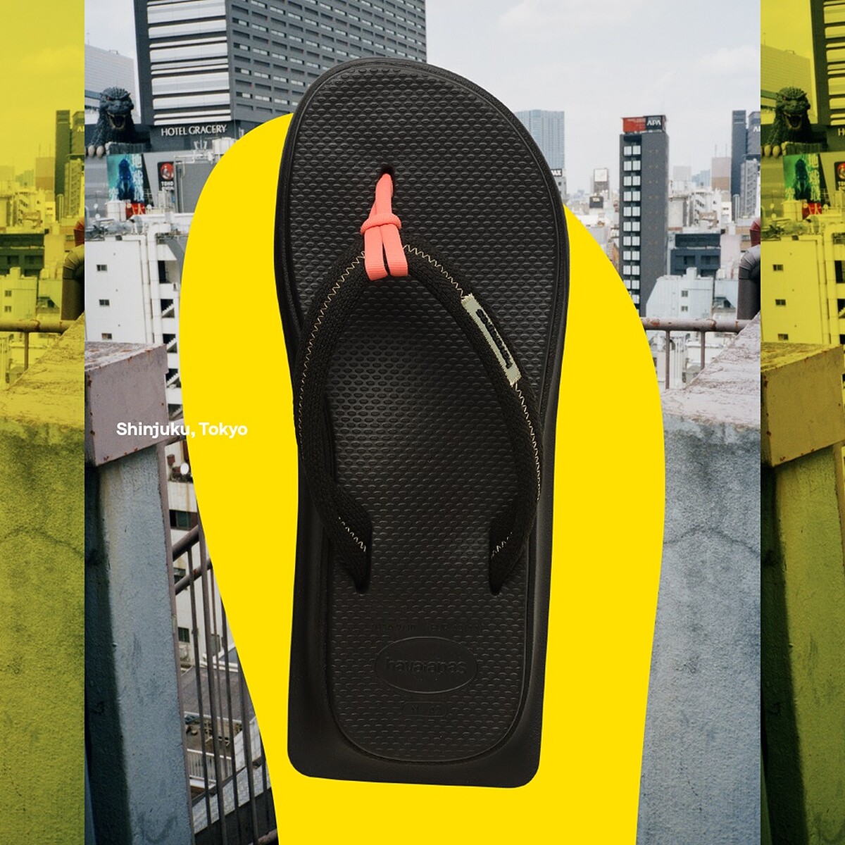 從巴西紅遍全世界的Havaianas哈瓦仕,在2020年為了致敬品牌最初以日本草履鞋作為靈感,擷取同樣來自日本的木屐文化,為夾腳拖賦予全新樣貌,2021年秋冬,Havaianas哈瓦仕再以日本東京街頭文化作為設計概念,把熱鬧地區原宿、上野、新宿打造成夾腳拖。