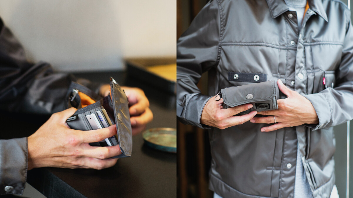 「Type II Tanker」另一個亮點在於胸前有一個可拆式的Porter折式皮夾,皮夾一樣承載著《Tanker》系列DNA,內側同樣使用Rescue Orange的尼龍面料來製作。