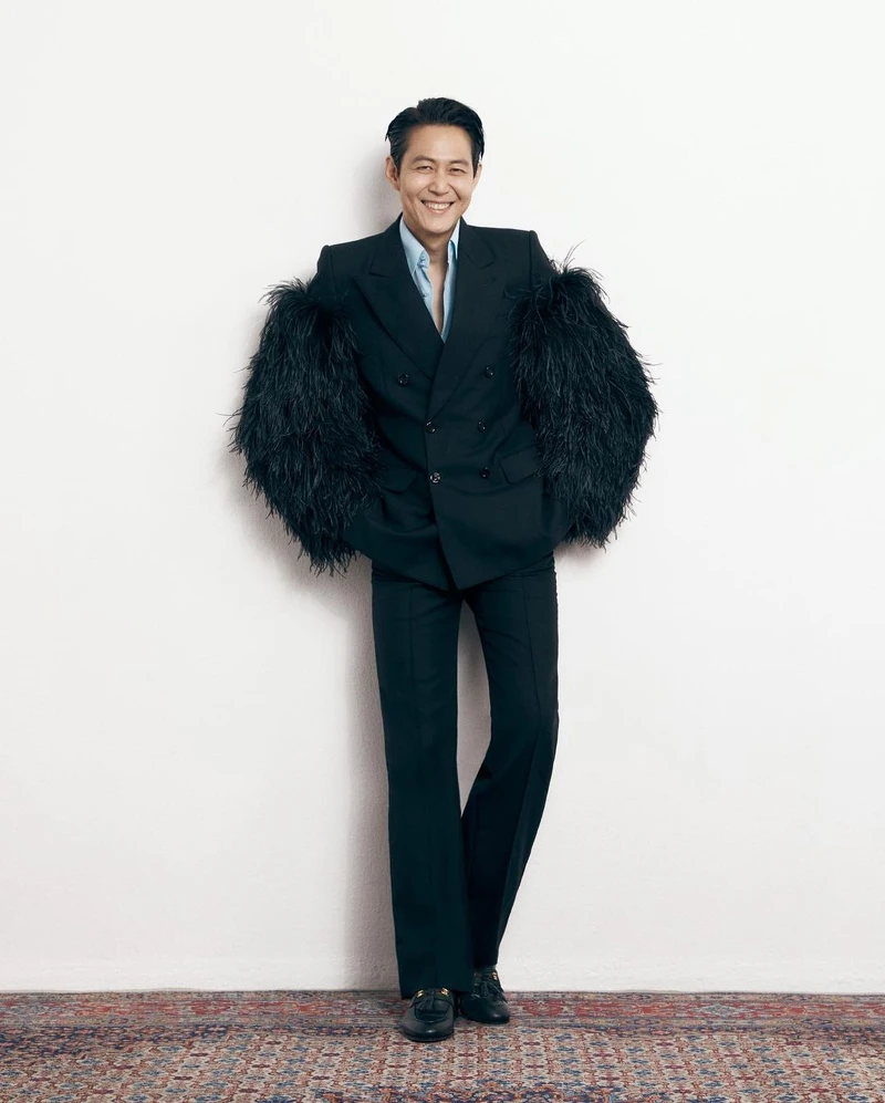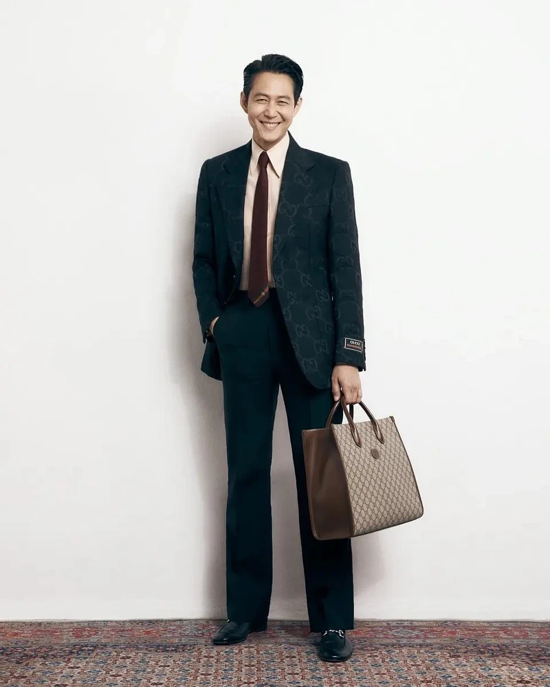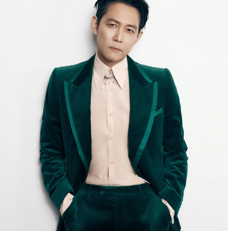 以NetFlix原創影集《魷魚遊戲》紅遍全球的韓國男神李政宰,透過經紀公司發表出任Gucci全球品牌大使,一連換穿Gucci三套造型拍攝品牌大使照片,包括雙G Logo造型西裝、天鵝絨綠色正裝,還有吸睛度十足的流蘇蓬袖黑色西裝。
