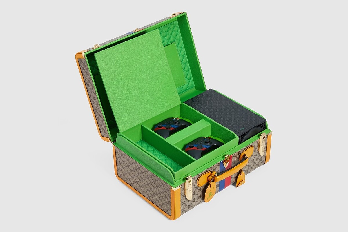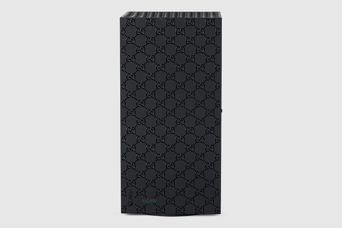 Xbox主機本體透過雷射雕刻的方式,將Gucci的GG花紋刻印在外殼上。小小地科普一下,有別於台灣的流行語法,西方文化裡的「GG」指的是「Good Game」。古馳的GG老花除了代表品牌創辦人Guccio Gucci的縮寫,也在本次的聯名順勢應用到遊戲用語。本次聯名限量100組,主機的左下角以綠色的字註記每一台機台的標號。