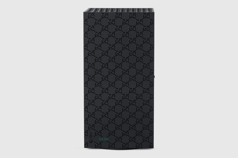 Xbox主機本體透過雷射雕刻的方式,將Gucci的GG花紋刻印在外殼上。小小地科普一下,有別於台灣的流行語法,西方文化裡的「GG」指的是「Good Game」。古馳的GG老花除了代表品牌創辦人Guccio Gucci的縮寫,也在本次的聯名順勢應用到遊戲用語。本次聯名限量100組,主機的左下角以綠色的字註記每一台機台的標號。