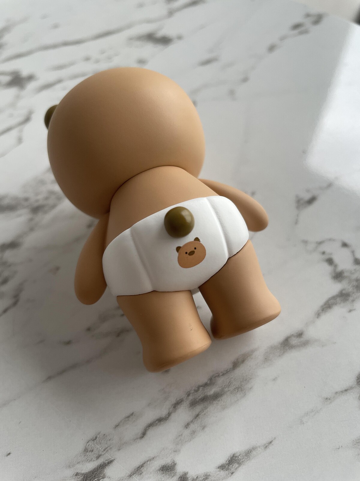 另外還有一款隱藏版的「布萊納熊寶寶」,帶著嬰兒肥的布萊納小熊,穿著一件卡通式的尿布,背面還有一個迷你小熊插畫,嘴裡嘟著奶嘴的模樣實在太可愛!長相如此療癒的「布萊納熊寶寶」,只有5%的機率可以抽中。
