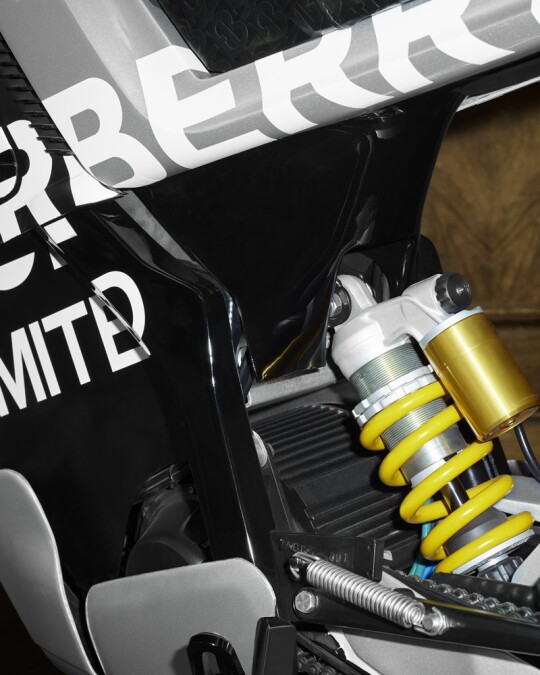 還可以向DAB Motors選購客製化服務,包括車身上的Burberry經典徽標、Burberry皮革手工縫製TB花押字坐墊以及電動摩托車兩側把手,都能依照個人化的喜好進行調整,Burberry限定版Concept-E RS電動摩托車提供兩種配色,每台售價約為29,900歐元,相當於95萬台幣,想入手這台拉風電動摩托車的騎士們,務必到Burberry詢問。