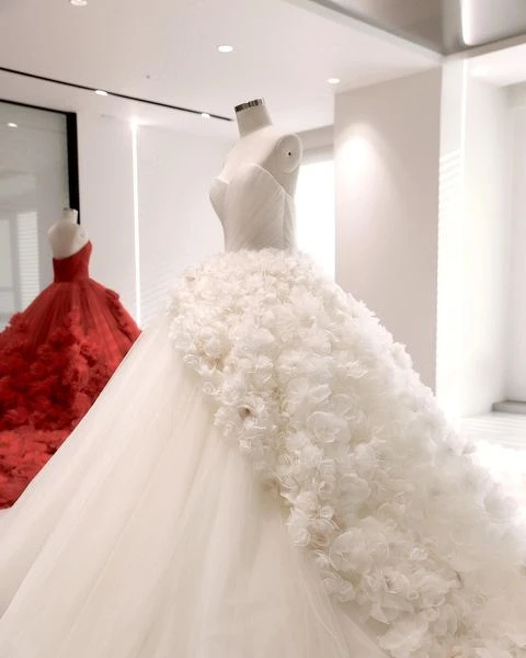 承接前段所說的,Nicole+Felicia很擅長運用薄紗,除了成功駕馭各種色彩來製作禮服,也透過薄紗堆出極為夢幻的公主蓬蓬裙線條,像是泰勒絲MV當中的兩套禮服便是最佳範例。