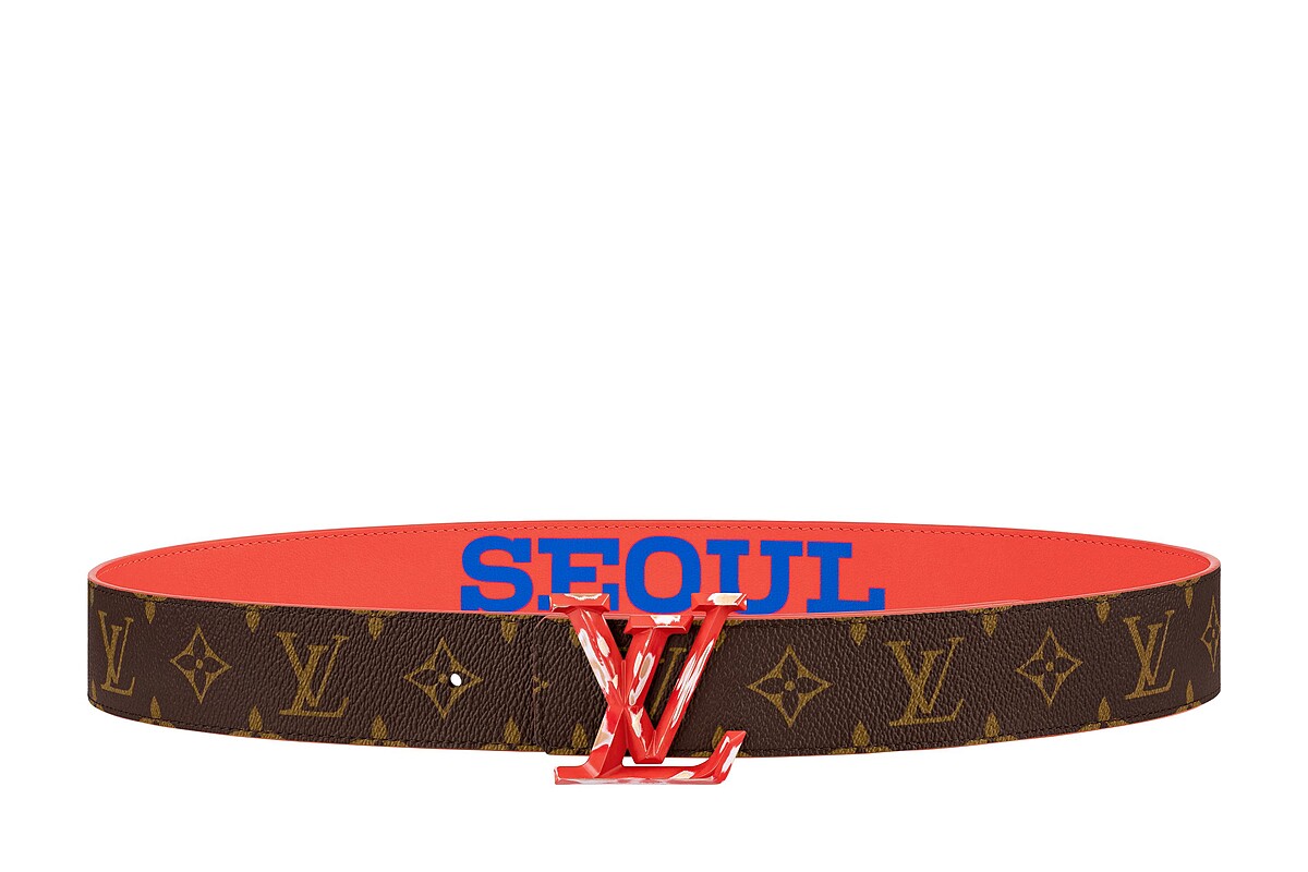 LV城市專屬皮帶系列選用觸感柔軟的小牛皮革製作,一面為飽和的色彩,另一面則是LV經典符碼Monogram老花圖案,搭配最具代表性的路易威登標誌皮帶釦,並從街頭文化中取得靈感,將皮帶釦以獨特的仿舊加工處理呈現,皮帶採用雙面設計,皆印有代表的城市名稱。