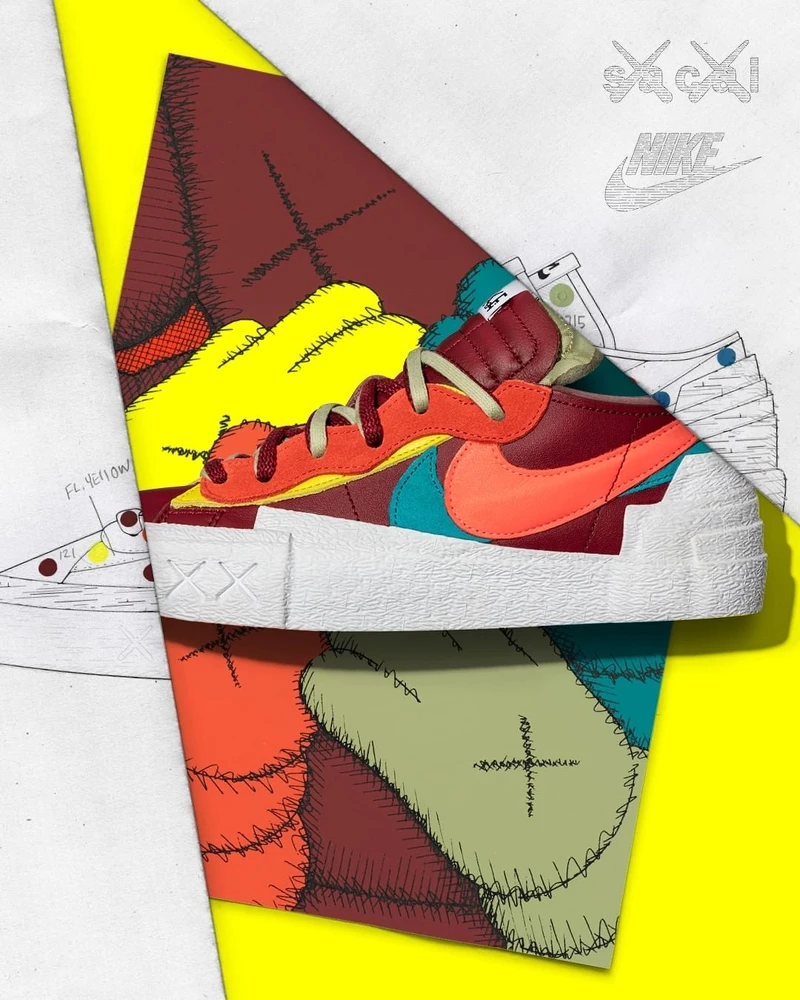 約莫暑假尾聲,Sacai X Fragment Design X Nike LDWaffle聯名系列旋風登場,惹得球鞋迷們心癢癢,2021年末,Sacai再發表重磅聯名消息,找上當代藝術家Kaws,共同打造聯名球鞋Nike Blazer Low,消息一出又再掀起話題熱度,目前曝光的配色共有4款。