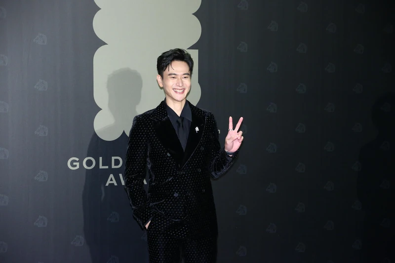 《詭扯》最佳男配角入圍者,劉冠廷的黑色西裝別有心裁,絨面材質帶有可愛的灰色點點,展現出不一樣的男子紅毯西裝look。