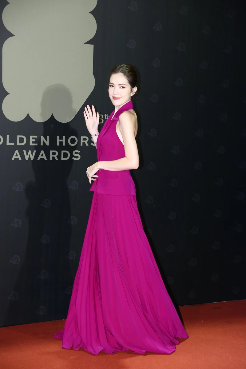 尖叫聲!許瑋甯選擇了一件葡萄紫色的性感禮服,上身西裝的設計,結合深V的剪裁,配上鑽石項鍊點綴,紅毯最美之一無疑有她!