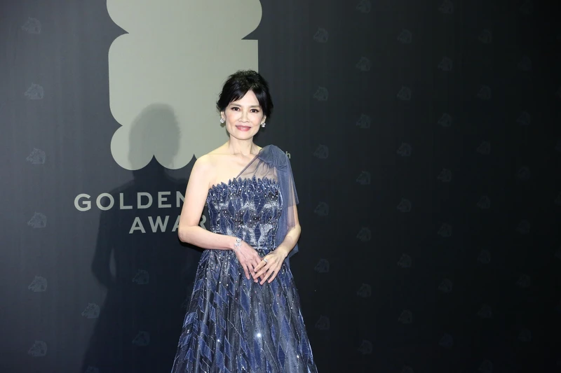 因《修行》而入圍金馬的湘琪姊,浪漫的深藍色鑽光薄紗禮服,展現出專業演員的成熟風範。