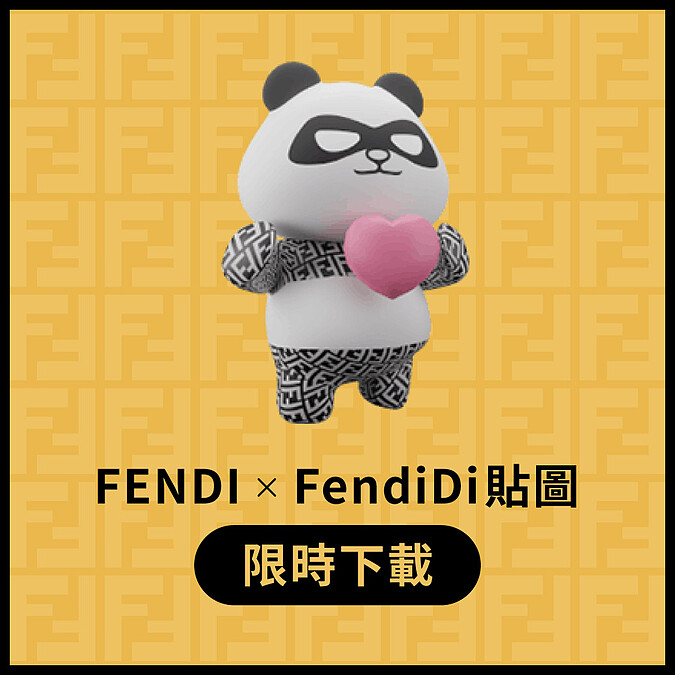 為慶祝這一波帳號開通,Fendi將品牌吉祥物白白胖胖的熊貓「FendiDi」做為主角,FendiDi脖子與四肢位置帶有濃濃的品牌DNA,綴以Fendi標誌性的FF logo印花。