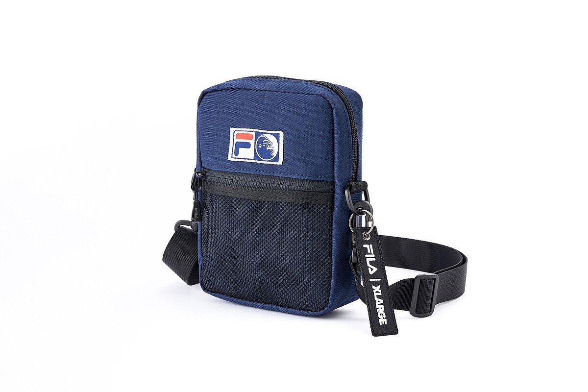 Fila經典小包注入XLARGE街頭潮猩標誌,推出天空藍、靛藍色;漁夫帽一邊是雙方品牌標誌,一邊則是F Logo與潮猩圖案,包括經典黑、寶藍色。