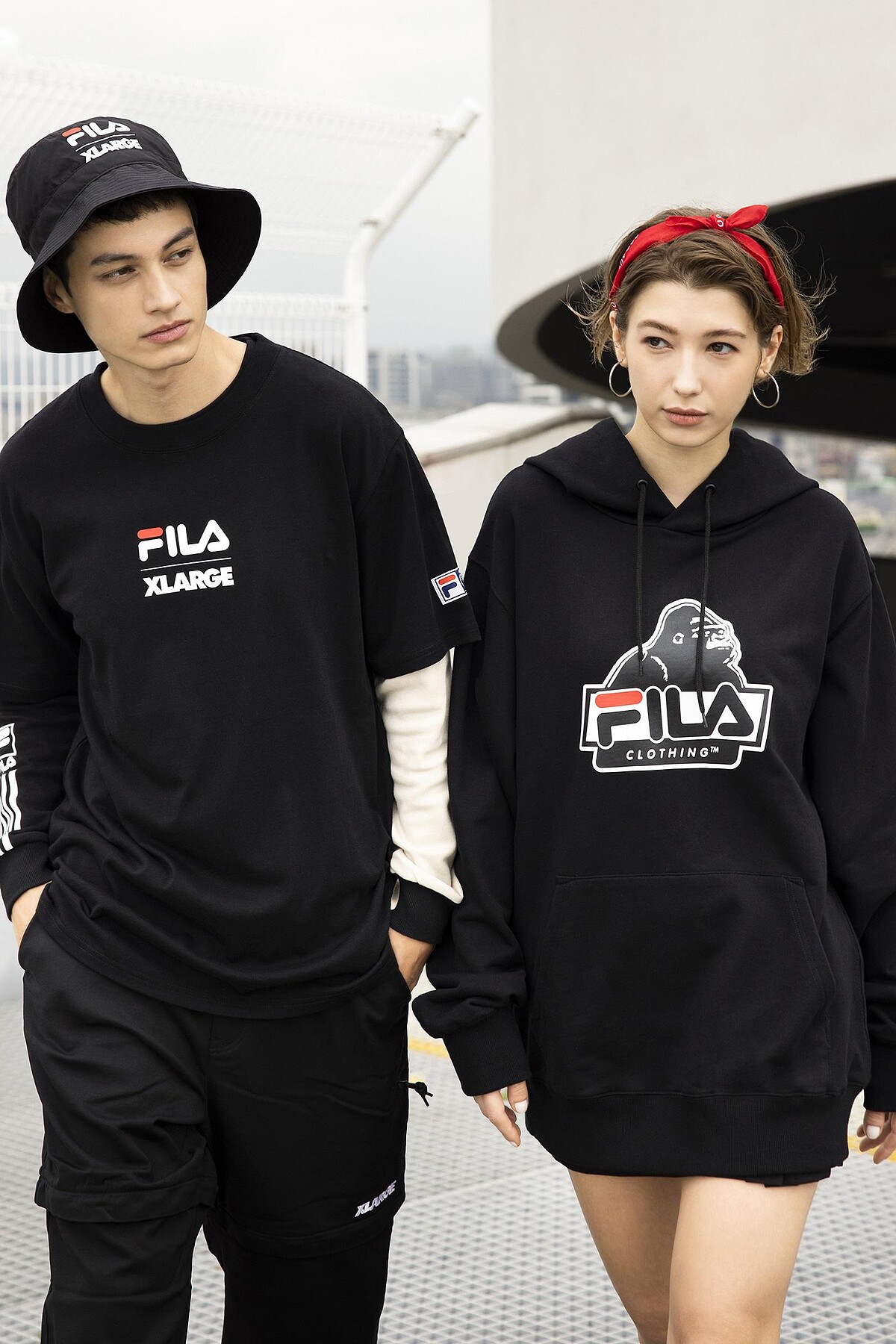 靈感源自90年代的復古氛圍,將Fila Logo與XLARGE街頭潮猩融合,並以黃色警戒線的概念呈現,服裝以黑、白、紅色為主要用色,綴以鮮明的亮黃色,推出短袖T-Shirt、五分袖上衣、連帽TEE。