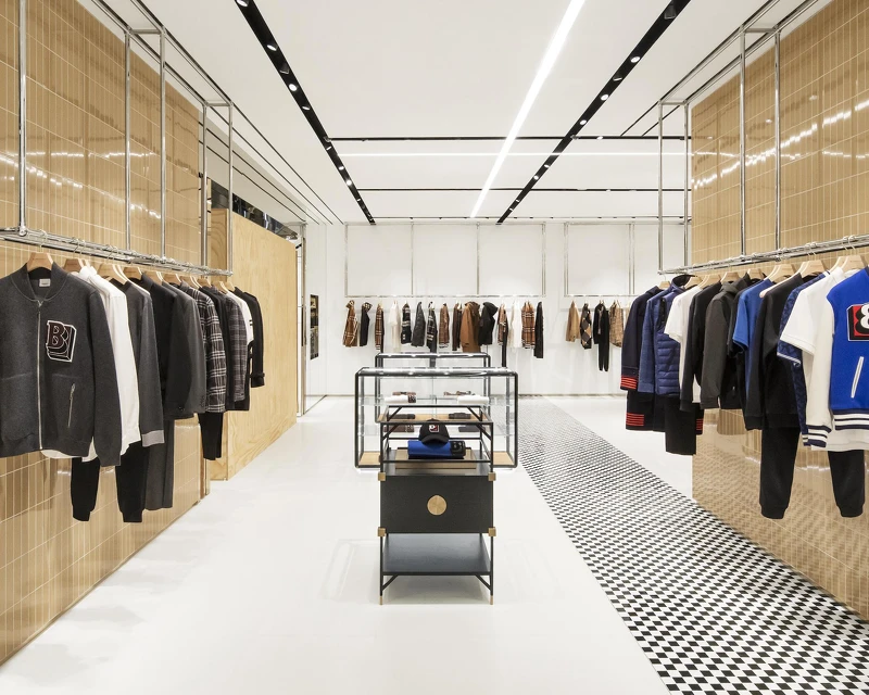 Burberry經常用到黑白、蜜金配色在服飾上,本次的男裝店也忠於品牌設計特色,在地面、牆壁都能看見這樣的元素。在不能出國的日子裡,還是可以享受到和倫敦一樣的購物氛圍!