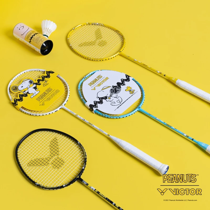 羽球熱席捲全台,Victor找來Snoopy推出入門、中階、高階的專業羽球裝備,不論是把羽球當興趣的愛好者,或是可以出國比賽的專業球友,都能尋覓到一支適合自己的羽球拍,最推薦中階全碳對拍組合,附贈查理布朗造型羽球筒。