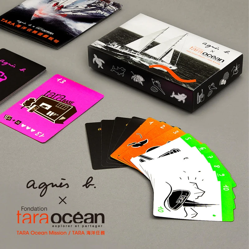 對環境保護不遺餘力的Agnès女士,自2003年開始啟用TARA雙桅帆船於世界各地海域進行海洋考察計畫,希望藉由豐富的海洋生態研究成果,加深大眾對於海洋的環保意識。在台灣agnès b.團隊每一年都會發起對海洋環保的相關活動,今年特別攜手TARA海洋科學考察基金會推出TARA Ocean Mission海洋任務限量桌遊卡牌。
