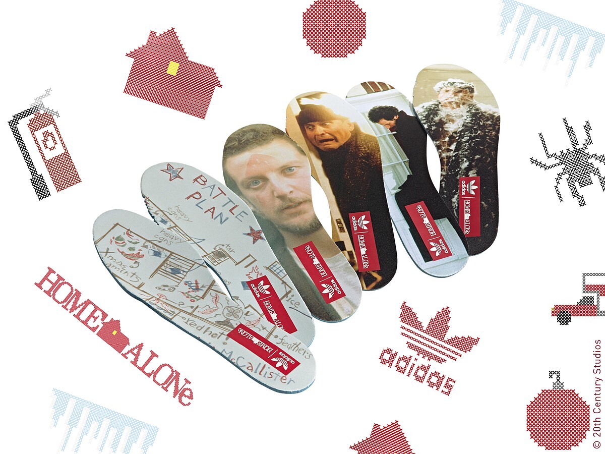 除了上述的設計細節,adidas Originals特別在魔鬼氈鞋扣帶後藏了驚喜,寫上電影經典台詞「This is my house, I have to defend it.」,此外,每雙鞋附有Home Alone鑰匙圈及金屬鞋帶扣配飾,還加碼提供3組電影經典場景的鞋墊供替換。
