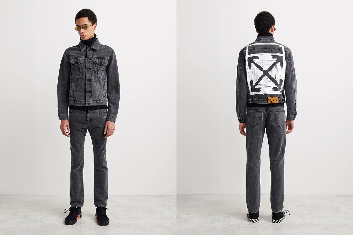 看似平常的牛仔夾克,其背面烙印上滿版的Off-White Arrow,並且特以用塗鴉的筆觸效果,凸顯叛逆的街格性格。