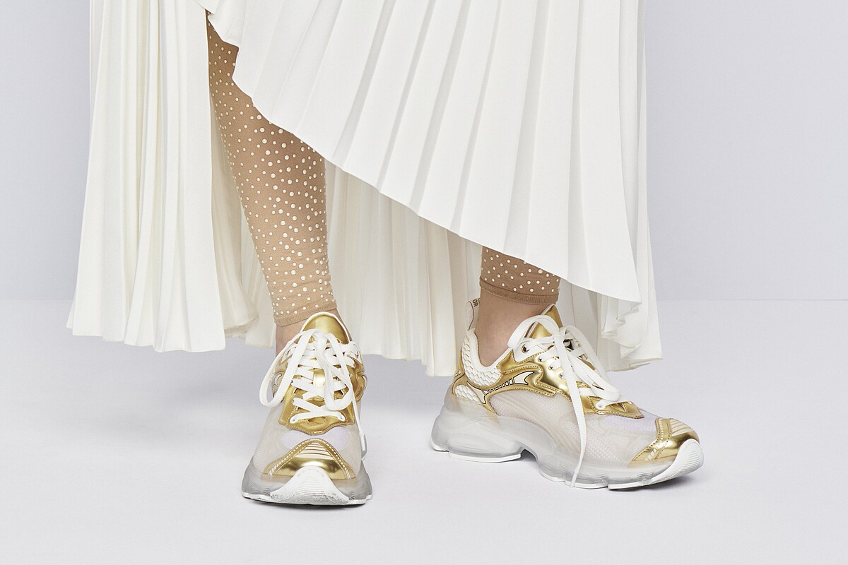 首度於Dior 2022渡假系列問世的Dior Vibe運動鞋,2021年10月搶先在台開賣,距離年末不過短短兩個月時間,卻以獨特外型衝進熱賣排行,鞋身的透明面料綴以金色、銀色鑲片,並加入迪奧先生鍾愛的幸運星符號和「Christian Dior」標誌,是Dior今年不可缺少的一雙神鞋。
