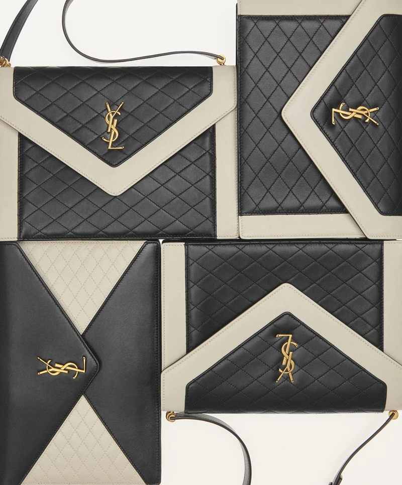 從法國黑色歌舞喜劇《8 Femmes》獲取靈感,並以Catherine Deneuve主演的角色作為命名,經典菱形絎縫設計,搭配標誌性的信封式翻蓋,包內則以柔軟小羊皮面料製作,襯以奢華古銅色金屬細節,每一處皆展現GABY包款的迷人魅力,也就是因為如此,使GABY系列在沒有太多名人的加持下,成為今年度聖羅蘭的熱賣亞軍,話題熱度更媲美品牌經典包Niki。