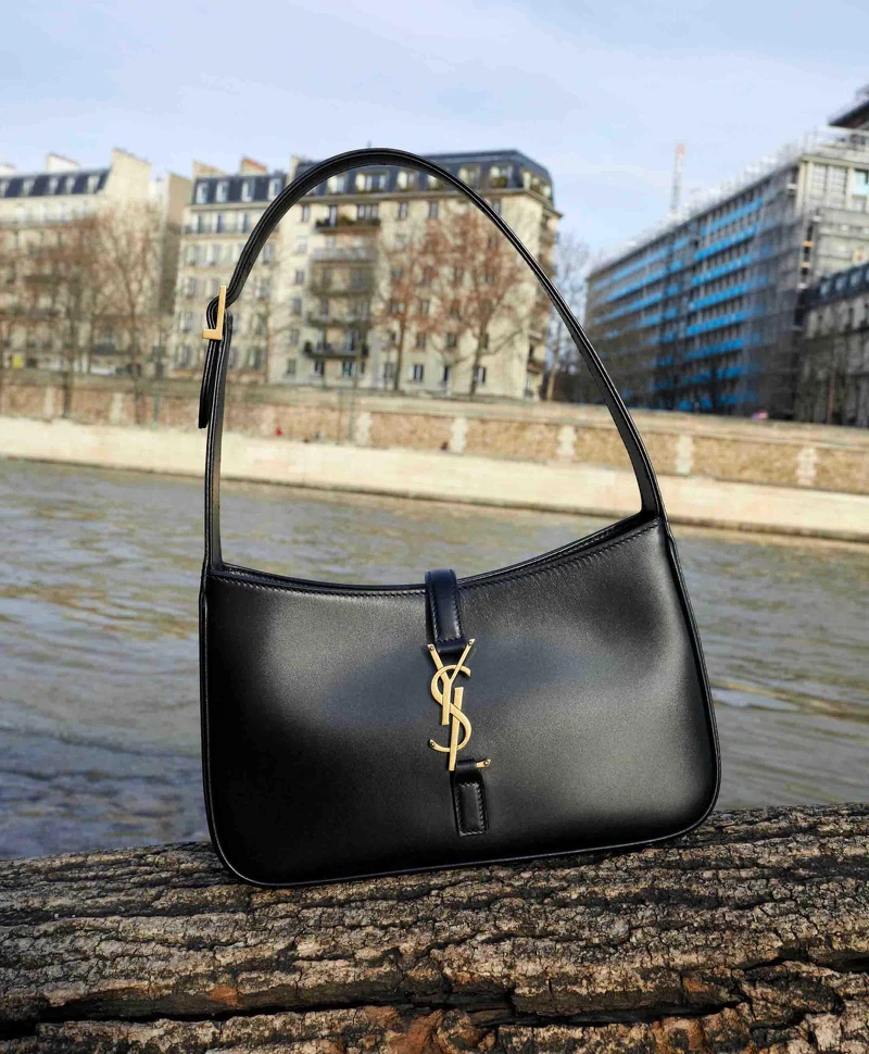 前面提到了這麼多包款,始終未出現的5 À 7復古腋下包,就是今年度的熱賣王,2021春夏系列首度亮相,由品牌大使Rosé搶先背上,除了復刻70年代的包款輪廓、百分之百小牛皮製作、古銅色金屬YSL釦環與剛好落在腋下的手袋長度,最讓人無法抵擋的,就是合理好入手的定價,上半年甚至是一包難求。