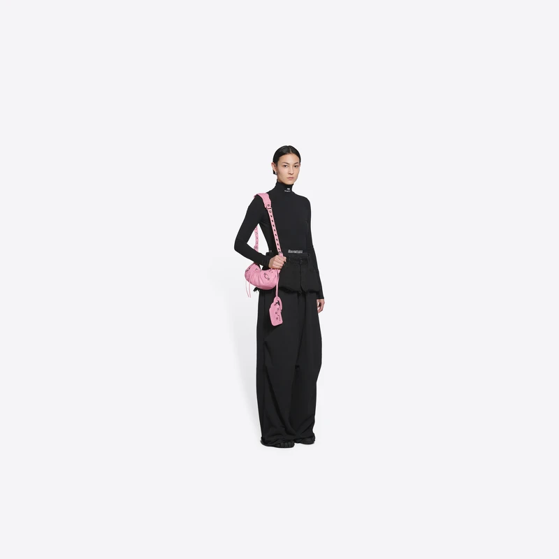 從Balenciaga經典機車包延伸而來的Le Cagole包款,源自法國俚語Cagole一詞,意思是太過於打扮自己的時尚達人,創意總監Demna Gvasalia以此為靈感,打造有著繁複外觀的Le Cagole包,精心挑選Arena小羊皮、柔軟牛皮,結合扁平鉚釘、精巧搭釦以及打結皮革拉鍊等經典元素,並加入金屬鉚釘和孔眼、可調節編織肩帶、外掛皮革吊飾包及心型掛鏡,推出單肩包、大容量腋下包款式,其中,Le Cagole粉色款在台灣開賣後大受歡迎,現在是有錢也買不到的狀態。