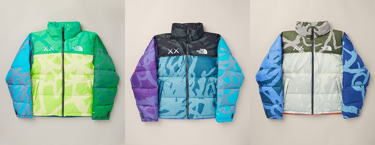 選定The North Face兩款經典羽絨衣:1996 Nuptse Jacket以及1986 Moutain Jacket作為這一次聯名的主打商品,結合上Kaws活潑、跳脫框架的塗鴉設計與用色,將多種亮色相互拼接,和The North Face過去所推出過的服飾相比,配色顯得更為大膽,也呼應品牌「探索永不停止」的宗旨。