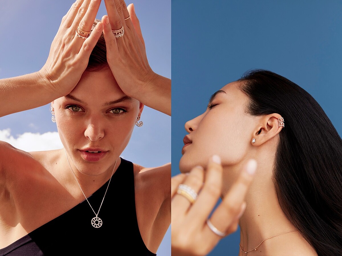 De Beers Dewdrop系列靈感來自黎明時分的清新露珠,以精緻的鑽石排列象徵生命中嶄新的開始和無限可能性,圓弧線條搭以鑽石巧妙排列,營造出簡約閃耀的迷人光彩,讓女人成為優雅知性的大女主,將柔美風格以個性感詮釋,於日常穿搭中也能輕鬆融入,簡約的全新圈形鑽石耳環設計取自De Beers代表性的圓牌吊墜輪廓,隨著佩戴者的舉動,能創造出宛如鑽石優雅地飄浮於耳際的視覺效果。