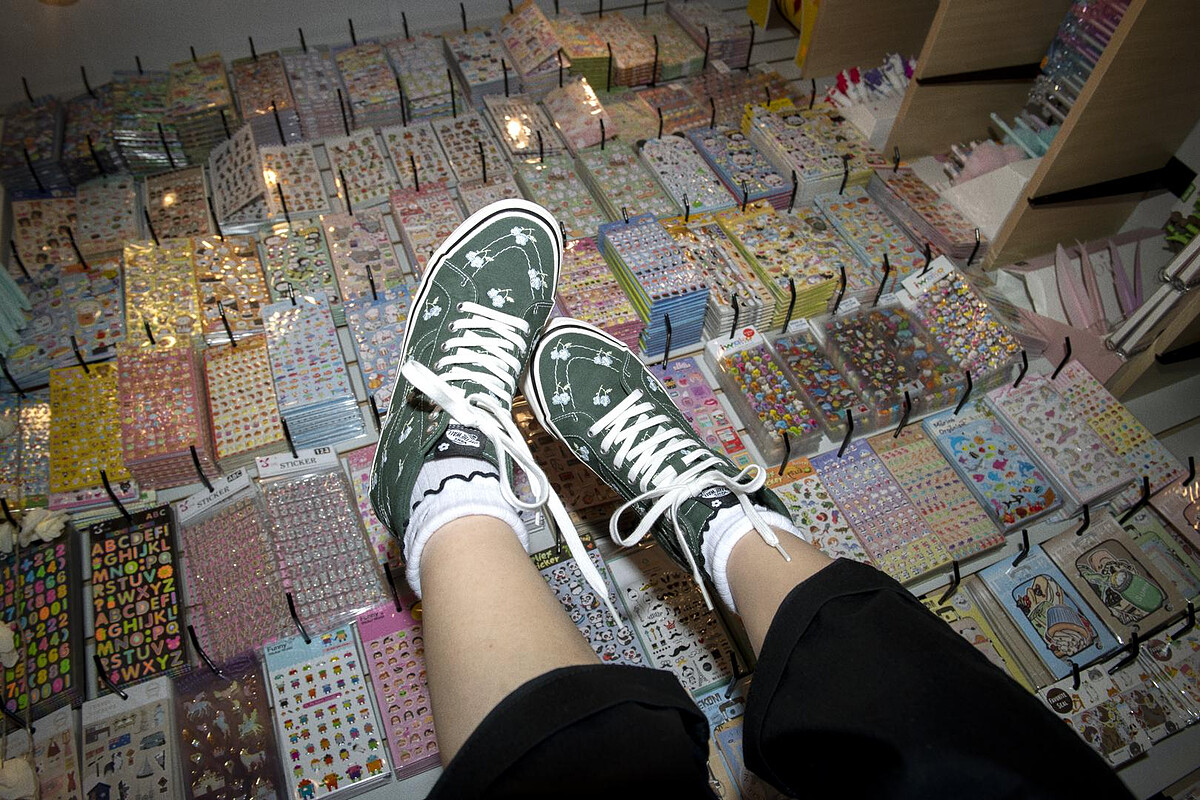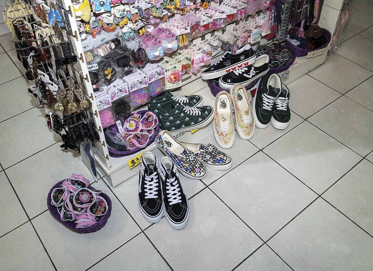 首先是以玫瑰刺繡鞋面的Sk8-Hi、兩邊綴以小花刺繡的Style 73 DX、繽紛格紋搭配蝴蝶圖案還有可拆卸小包的Authentic 44 DX、綠色羊羔絨鞋面與小花鞋帶的Half Cab 33 DX,以及融入解構元素和點綴蕾絲花邊的全新鞋款Sk8-Hi Tapered Modular。