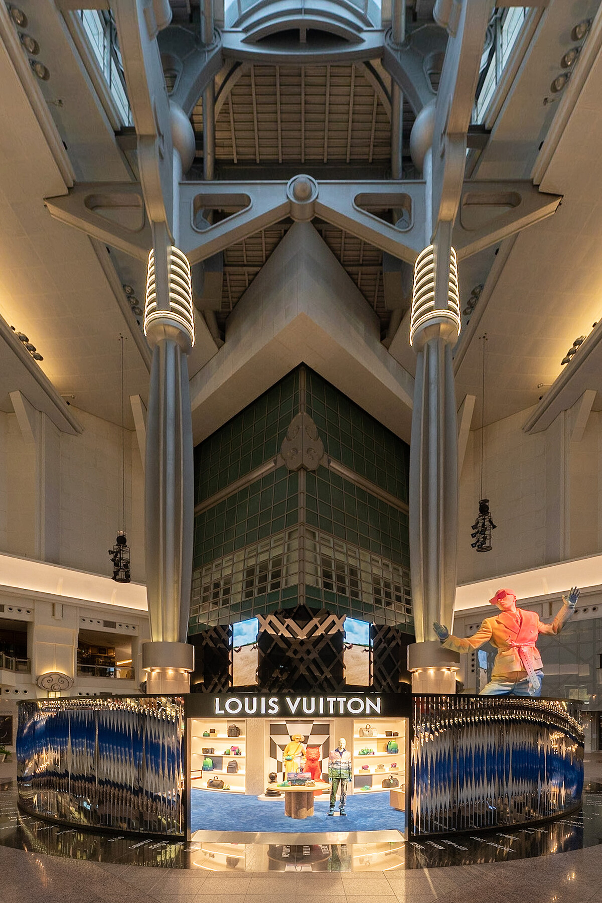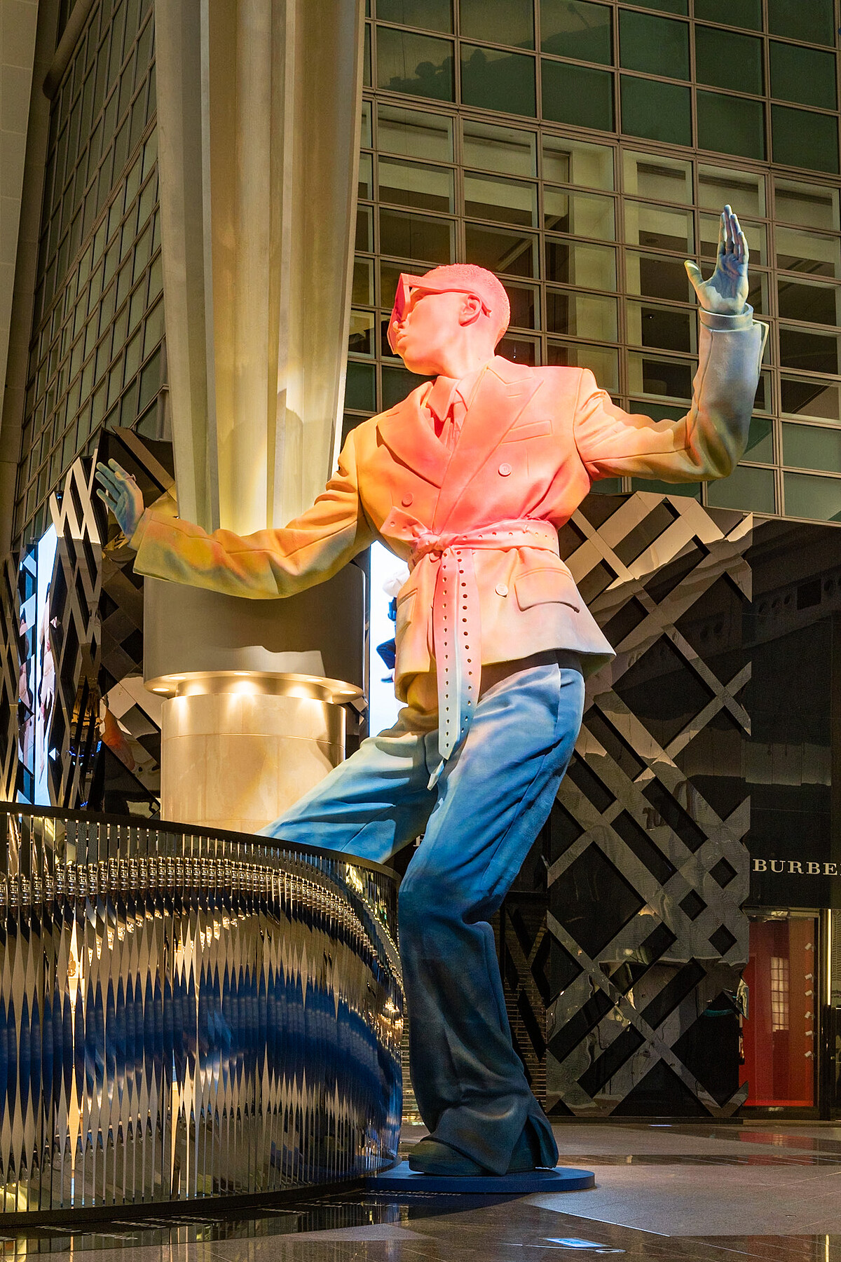 大家還記得LV 2022春夏發表會上,有一尊超巨大的Virgil Abloh雕像嗎?本次在101設計的男裝專賣店也有一尊,以LV御用跨性別模特兒Kai Isaish-Jamal為雛形所打造,噴上橘、紅、黃、藍等不同的染料,營造出迷幻的視覺效果,也是呼應Virgil Ablohx遊走在hip pop文化與精品世界的設計理念。