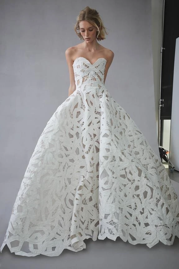 其中一張與老公崔泰俊一起拍攝的婚紗照,朴信惠身上的純白蕾絲雕花的低胸禮服,是出自晚禮服之王Oscar De La Renta 2022春季系列,總是能幫女人們設計出最美的禮服,讓世人封他有洞悉女人的能力,其做工有多精美不需多提,更別說除了朴信惠之外,莎拉潔西卡派克、米雪兒歐巴馬…都是它的粉絲。