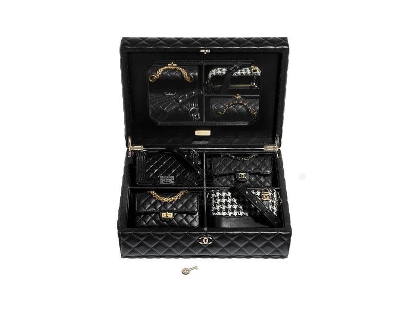 在香奈兒2019/20 Métiers d’Art工坊大秀引發討論的Chanel Gift Box,集合品牌2.55、11.12、Boy Chanel、Chanel Gabrielle四大經典包款,裝在黑色菱格紋禮物盒中,是所有小香迷的夢幻逸品,雖然售價不斐且數量有限,當時開賣後隨即被搶購一空。