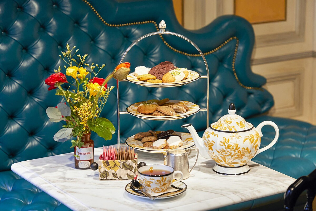 端從Alessandro Michele的時裝設計,就可以感受到一股濃厚的復古韻味,Gucci Giardino 25便也承襲了品牌總監的偏好,以雅緻的木質鋪地,搭配著孔雀藍沙發和座椅、芥黃色牆面等色彩鮮明的擺設與裝潢,重現18世紀晚期的美學風格。