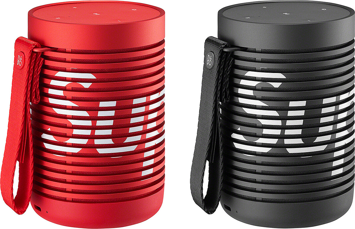 來自丹麥的影音器材公司鉑傲Bang&Olufsen(簡稱B&O),創立於1925年,近百年的影音設備研究經驗,如今是線上精品等級的影音配件品牌。選定B&O Explore隨身藍芽音響,換上Supreme紅、極簡黑新色並雷雕上品牌白色logo,此款音響防水、耐髒,充飽電的續航力最高可連續播放27小時。