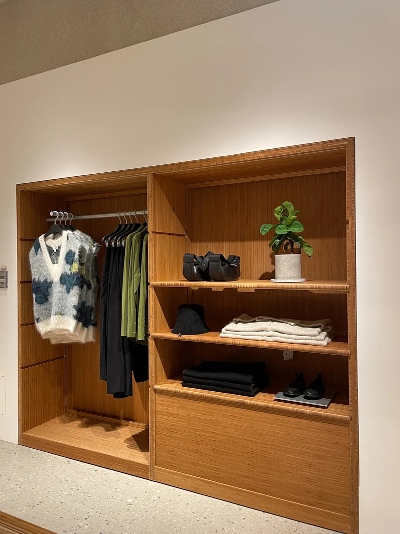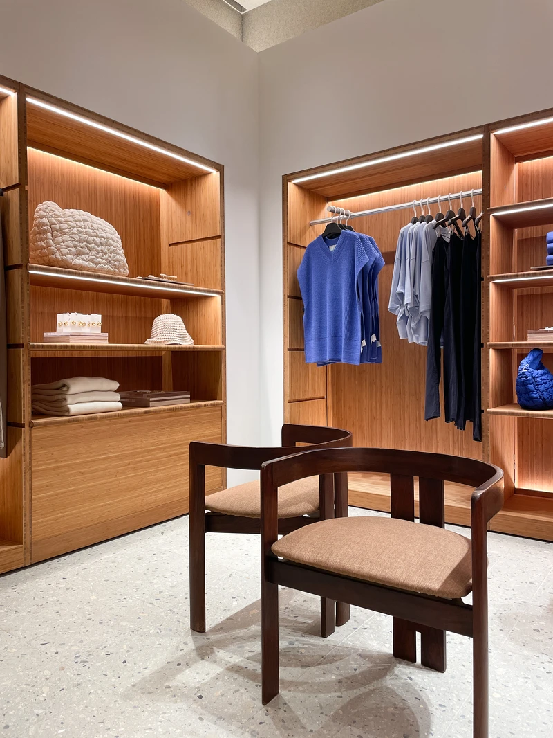 與其說COS 101店是一間服飾店,編輯私心覺得更像歐美劇裡會出現的步入式衣櫥、女孩們最夢寐以求walk-in closet!以嵌入式的木質衣櫃作為服裝的展示架,散發著一種溫馨的家居氛圍,呼應品牌「平價版CELINE」美名,COS更有許多質感家具與座椅穿插於購物空間,美輪美奐讓人好希望可以就地入住。