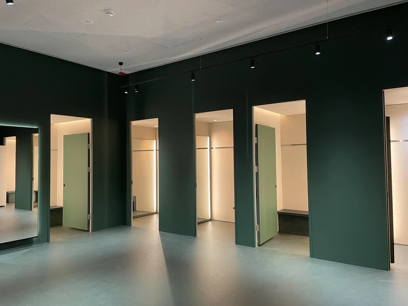 掏出信用卡之前,一定要試穿看看衣服是否合適自己,COS用2022 Q2品牌的主打色——青苔綠來打造更衣間,靜默的自然色讓試穿的過程變得更為療癒。