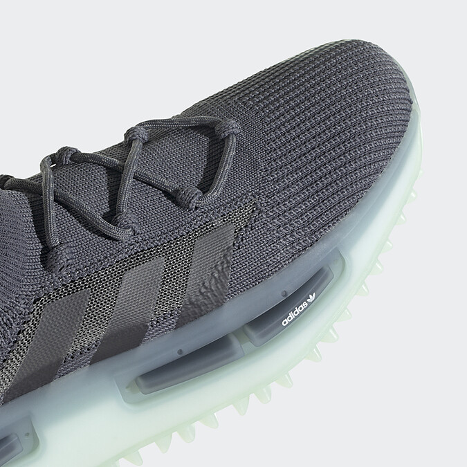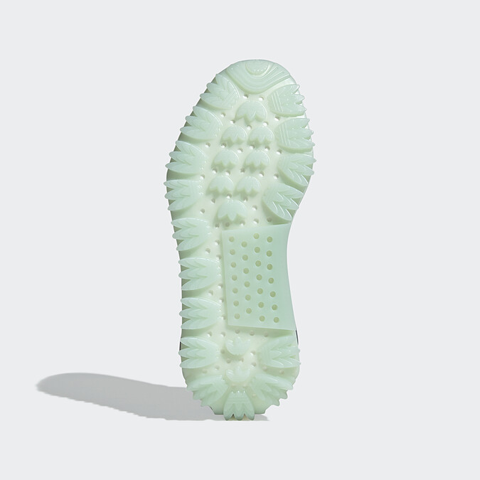 全新的NMD S1,S1是「Sneaker Number 1」的縮寫。帶著NMD原有的潮鞋基因,adidas Originals添入2022的流行趨勢元素——科技感,薄荷綠的半透明中底,將原本的彩色塊狀點綴換成與鞋底一體成型的3D突出細節。鞋底的部分也藏有細節,adidas三葉草logo重複堆疊,打造出鋸齒線條的線條感。