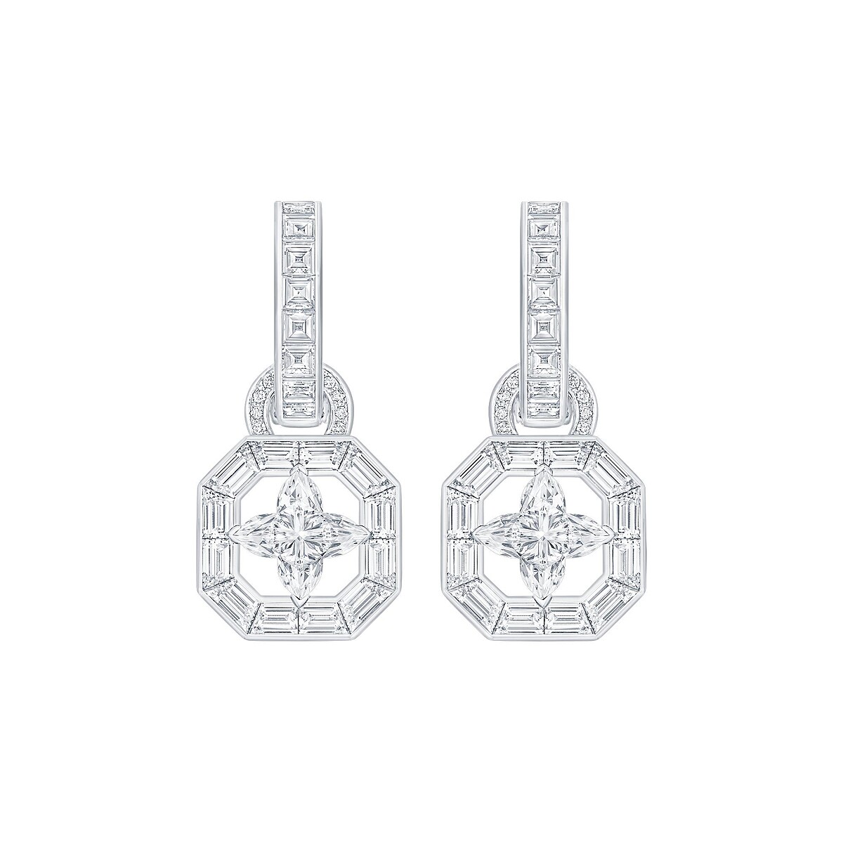 Le Mythe 鑽石耳環 白金,鑲嵌兩顆LV Monogram星型切割鑽石。